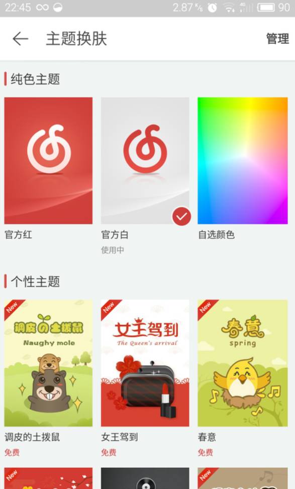 这个是网易云音乐的换肤界面,他提供了几个默认的,也提供了可以在线下载的主题,他的切换效果还是非常赞的,用过这个软件的同学肯定是知道的。学习完本文后就可以做出类似于这个换肤效果。