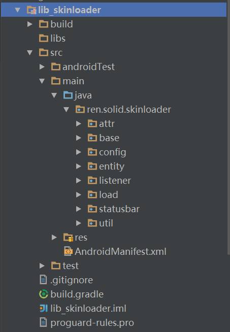这里我们直接来看看lib_skinloader这个库吧(这里面的内容大部分是来源于Android-Skin-Loader这个框架,我只做了部分修改,主要是适配AppCompatActivity,原框架是基于最初的Activty开发的,在这里再次感谢开源作者),这个库就是今天所讲的核心内容