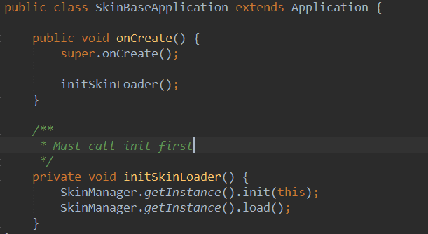 可以看到这里我们对SkinManager做了一些初始化的操作。以后我们有需要皮肤更改需求的应用一定要记得一定要继承于SkinBaseApplication。