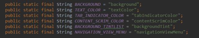 这里有个AttrFacory他的作用就是根据属性名,动态的去创建SkinAttr。在AttrFacory中定义了一些类似于这样的常量: