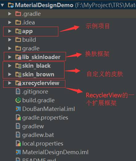 今天我要实现的一个换肤方案是基于github上的这个开源框架Android-Skin-Loader(https://github.com/fengjundev/Android-Skin-Loader)。这个框架的换肤机制是使用动态加载的机制去加载皮肤包里面的内容,无需Acitvity重启即可实现皮肤的实时更换,皮肤包是可以与原安装包相分离的,需要自己定做(这个皮肤包其实也就是一个普通的Android项目,只是只有资源文件没有类文件而已),这样做的好处就是可以在线提供皮肤包供用户去下载,也可以大大的减少安装包的体积,同时也很好的实现了插件化。其实这个框架是可以拿来直接来用的,直接几行代码基本上就可以解决Android的主题换肤,但是作为一个程序员怎么可以只是简单的知道怎么用就行了吗?如果真是这样就真的太low了。遇到一个好的开源项目我们至少需要把他的源码大致看一下,走一下基本的流程,了解一下他的基本原理,这样我们在技术上才会有所提升。本文实现的Demo是基于在我前段时间发布的Android Material Design 兼容库的使用详解一文中的Demo改进的。最后实现的App也是MaterialDesign的设计风格。