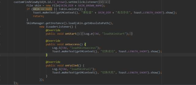 这个方法有两个参数,第一个是皮肤包的路径,第二个就是一个简单的回调