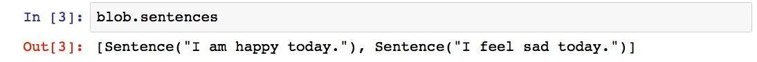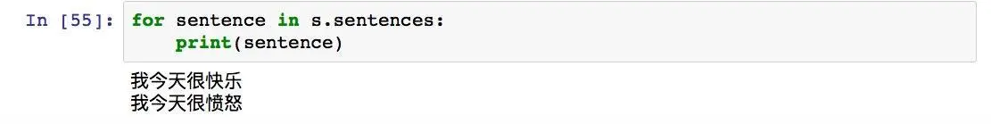 别着急,TextBlob已经帮我们把一段文本分成了不同的句子。我们不妨看看它的划分对不对。