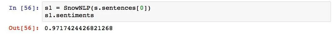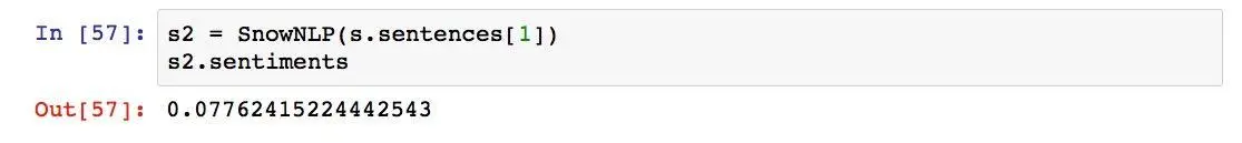 我们想看看SnowNLP能不能像TextBlob一样正确划分我们输入的句子,所以我们执行以下输出: