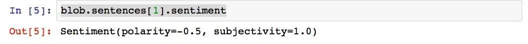 下面我们看看情感分析工具TextBlob能否正确识别这两句话的情感属性。