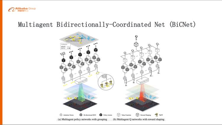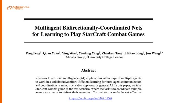 最近我们在《星际争霸》里的微观战斗场景下,提出来一个多智能体双向协作网络,关于这个网络的详细内容大家感兴趣可以下载我们的paper看一下,这个工作是我们跟UCL一起合作完成的,用来探索或者解决多智能体协作的问题。