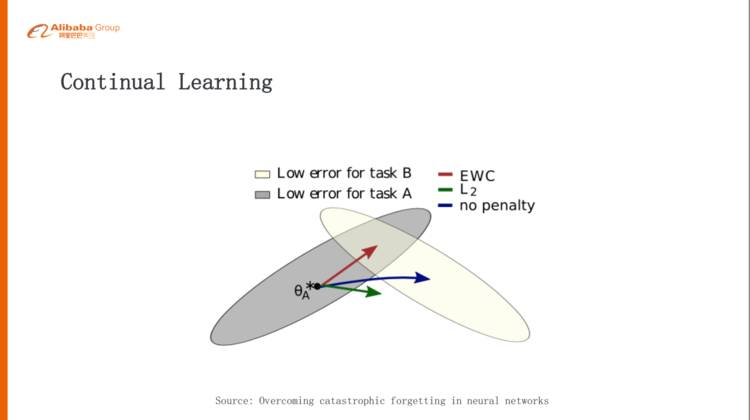 你发现它学习的时候,学会了A再学会B,A忘了,这个其实是对通用人工智能是非常大的挑战,最近DeepMind也发了一个相关工作的paper,这也是一个promising的方向,大家有兴趣可以去看一下,他们的算法叫EWC。