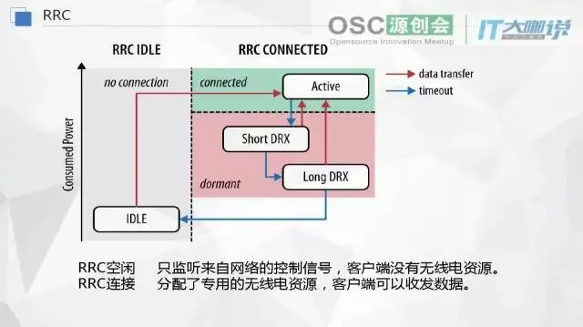 要想收发数据,必须先从空闲态进入连接态,这期间的耗时就是控制面延迟,大概需要100毫秒。