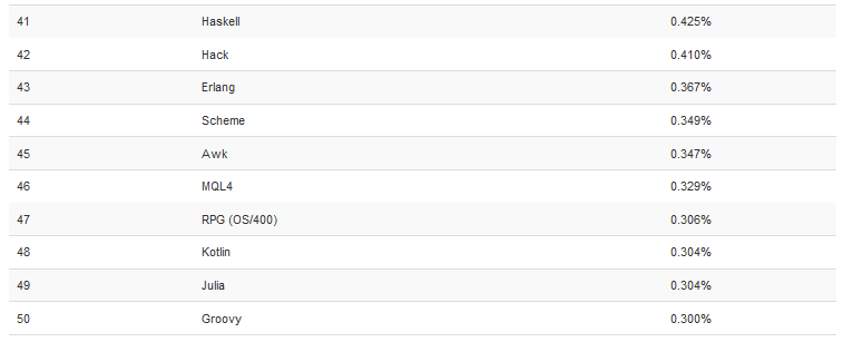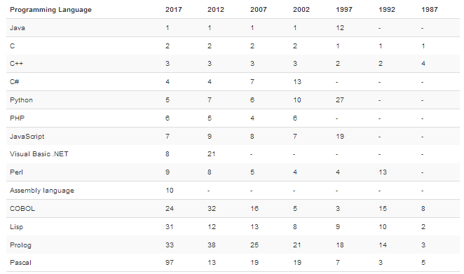 这个排行榜可以用来考查你的编程技能是否与时俱进,也可以在开发新系统时作为一个语言选择依据。