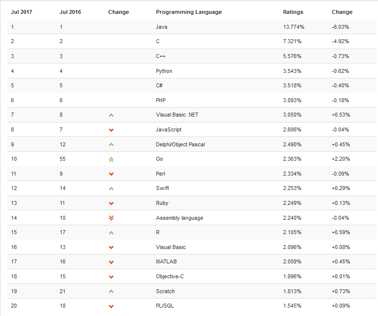 原 文:TIOBE Index for August 2017