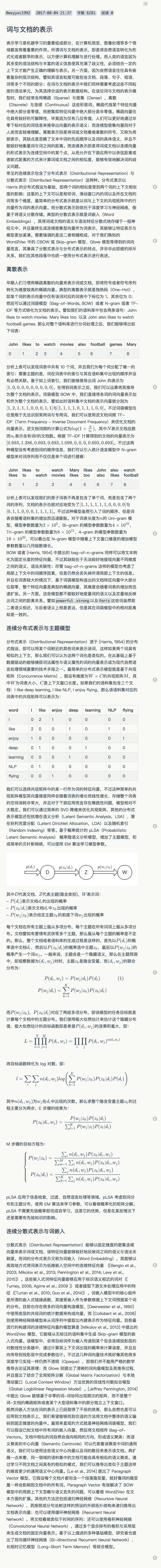 自然语言处理中词与文档的表示概述从属于笔者的程序猿的数据科学与机器学习实战手册,其他相关阅读Python语法速览与机器学习开发环境搭建,Scikit-Learn 备忘录,基于 Gensim 的 Word2Vec 实践。因为不太方便编辑过多公式,笔者偷懒用了这种方式,轻喷轻喷,原始的 MD 格式参考这里。