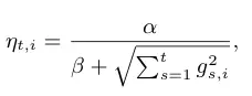 另外 FTRL 采用Per-Coordinate Learning Rates,意思是对于某个特征的完整性比较低的时候,会动态加大学习率,而对于特征完整性高的,会减小学习率,让特征权重慢慢学。学习率的计算公式如下,即步长等于历次梯度的平方和的开方的倒数: