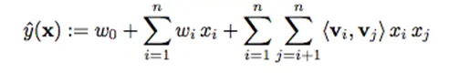 可以看到 FM 的前半部分可以理解成是 LR,后半部分可以理解成是特征交叉(2 阶 FM 只支持 2 维特征交叉)。