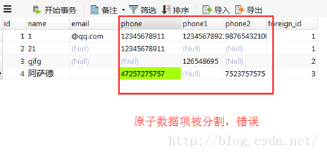 第一范式,是针对于数据表的列的规范,即数据表的每一列都是不可分割的原子数据项,而不能是数组,集合,记录等非原子数据项,说白了就是,不能把好几列的数据合在一起,且每一列的数据都是不可分割的,看看两个错误的例子: