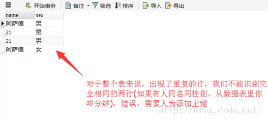 他的作用就是让表的每一行都不会一样,以便我们可以识别任何一行记录。那怎么实现这个作用呢?答案是给每一行分配一个序号,或者以每一行里肯定不会和其它行一样的数据项来识别,这就要求其它“可能“会一样的数据完全依赖于此序号(数据项)。