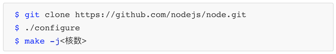 克隆编译 Node.js 的步骤还是比较简单的,如果是 *nix 下的用户,可以这么搞: