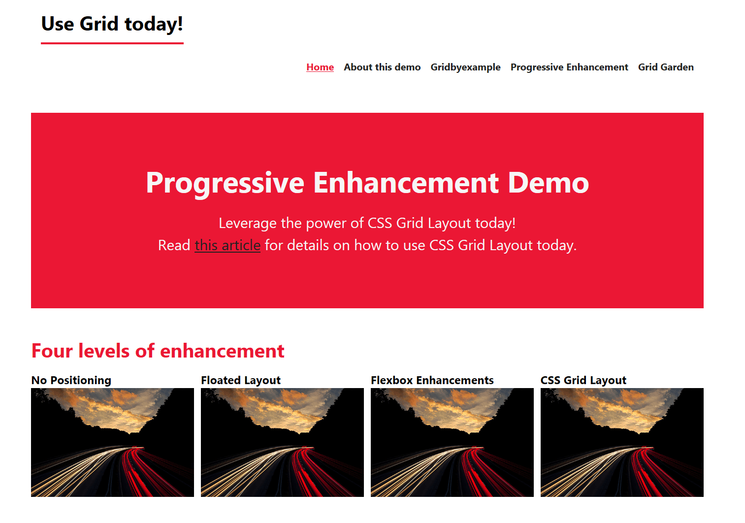 “四个层次的渐进增强”中的所有项目都因 CSS Grid 的加入而得到了提升。