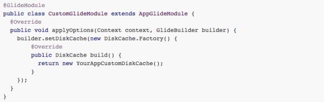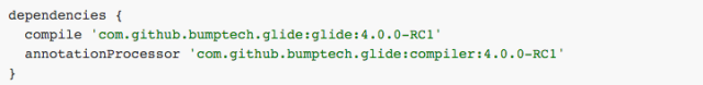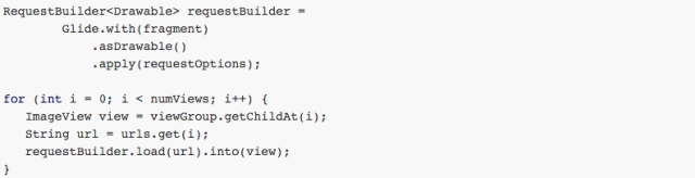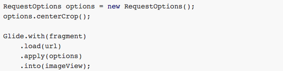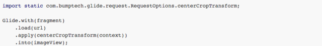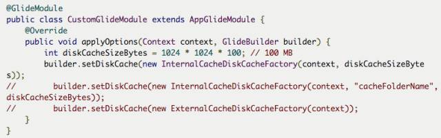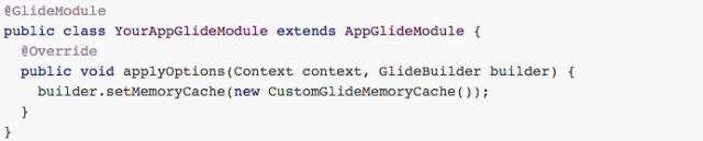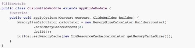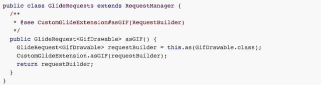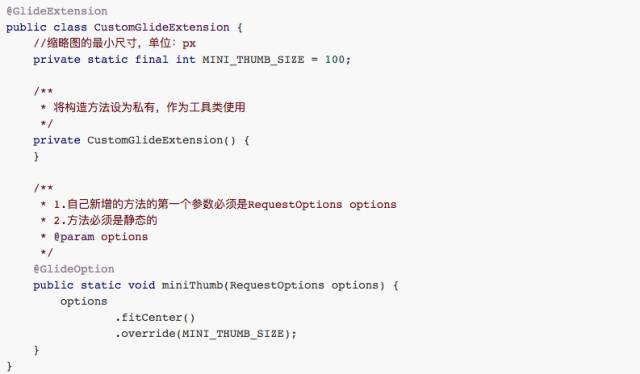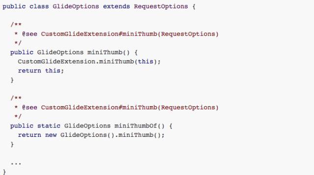 Glide使用了annotation processor来生成API,允许应用修改RequestBuilder、RequestOptions和任意的包含在单一流式API库中的方法。这是V4的特性,运用注解后使用起来更方便: