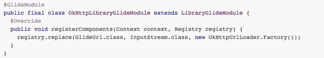 如果是library就实现LibraryGlideModule,以使用OkHttp为例: