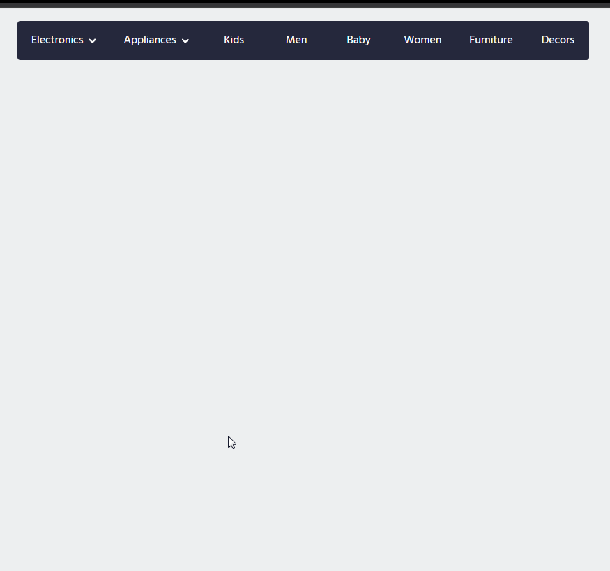在上面单栏菜单的基础上实现多栏菜单,就非常简单了。在这里,直接复用单栏菜单的结构即container__list的结构到菜单选项Appliances里面。当然这里只是简单的复制结构实现一个实例,在实际开发中,一般会使用到javascript来动态生成这些菜单选项。