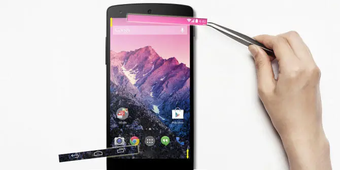 通过以上两个风格属性的设定,我们可以把状态栏和导航栏改变成任何你想要的颜色了。所以我们要在5.0上实现上面4.4开篇提到的沉浸式风格,那首先设置SYSTEM_UI_FLAG_LAYOUT_FULLSCREEN标签。
