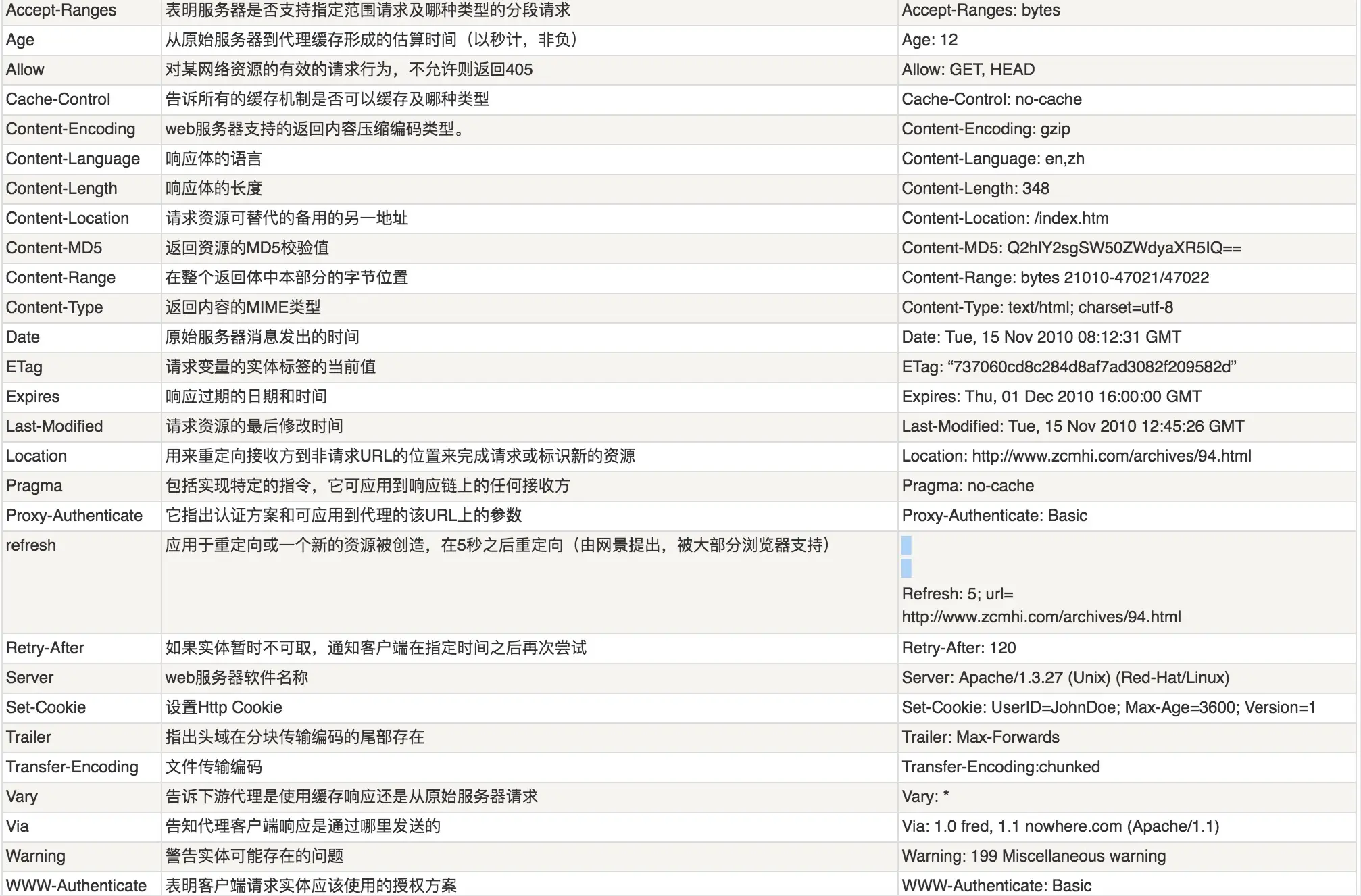 | 401 | Unauthonzed | 请求未经授权。这个状态代码必须和WWW-Authenticate报头域一起使用 |
