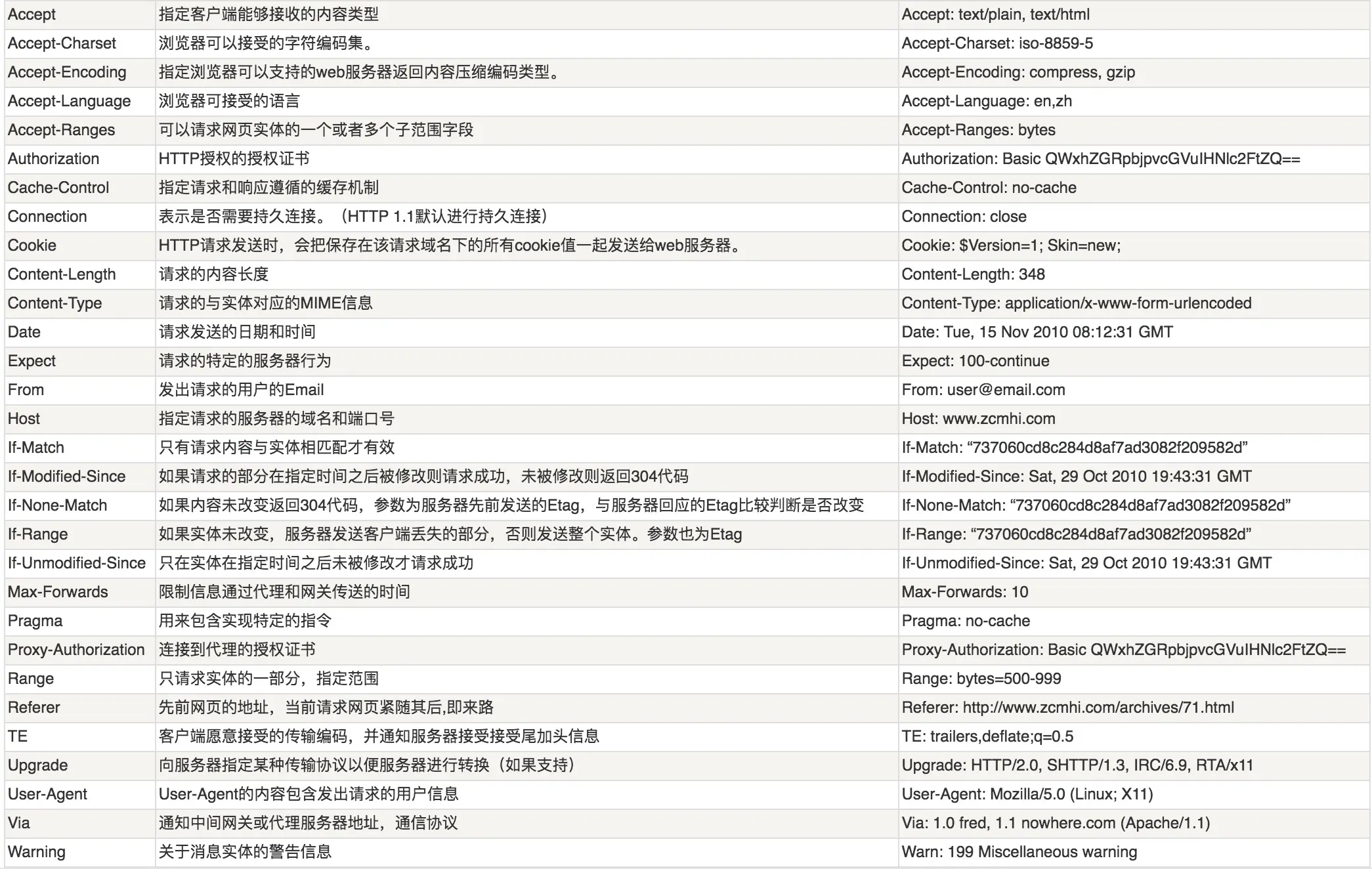作用:说明客户端、服务器或报文的部分信息