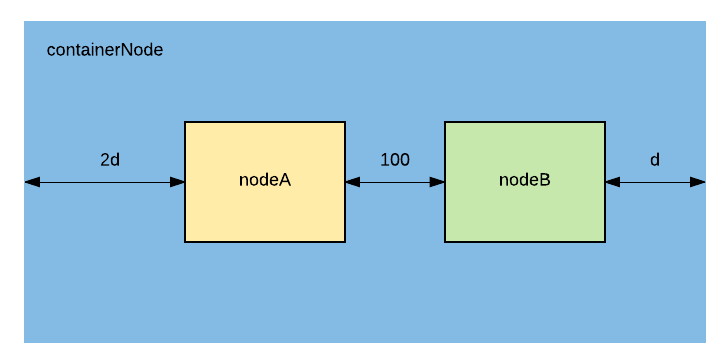 如果不指定nodeB的flexShrink和flexGrow,那么当空间富余或者空间不足时,AsyncDisplayKit就不知道压缩和拉伸哪一个布局元素,则nodeB的constrainedSize的maxSize就变为CGSize(width: Inf+, height: Inf+),即完全无大小限制,可想而知,nodeB的子node的布局将完全不对。这也说明另外一个问题,node的constrainedSize并不是一定大于其子node的constrainedSize。