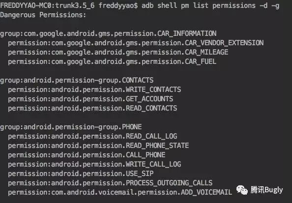 通过 adb shell pm list permissions -d -g 可以查看 Dangerous Permission (以权限组形式)