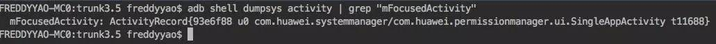 adb shell dumpsys activity | grep "mFocusedActivity"