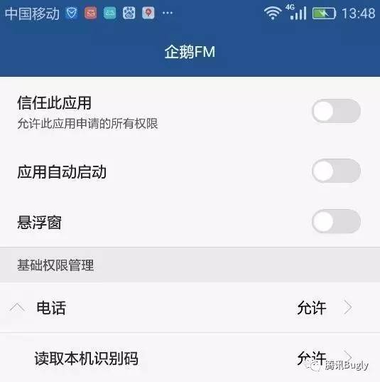 企鹅fm在华为p8上的权限管理页面对应的activity