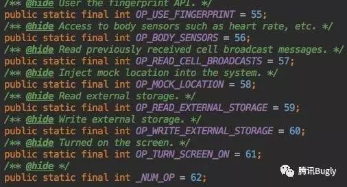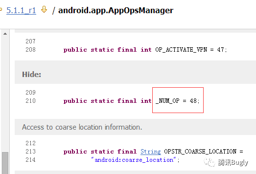 查看Android 对应版本 _NUM_OPhttp://grepcode.com/search?query=android.app.AppOpsManager&n=