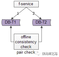 如上图所示,线下启动一个离线的扫描工具,不停的比对正表T1和反表 T2,如果发现数据不一致,就进行补偿修复。