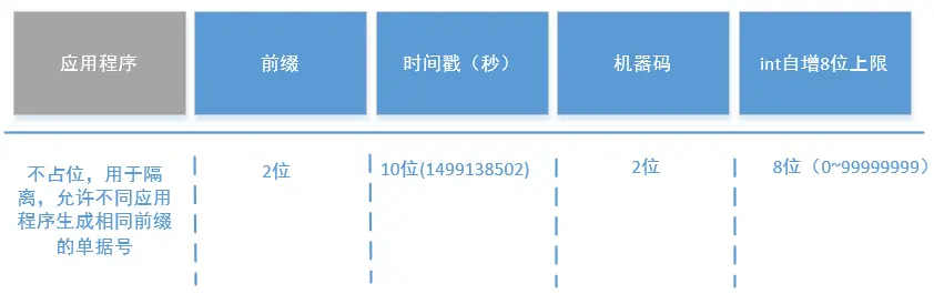 其中时间戳、自增数是全局共用的,所以对于单独某一类型的单据号并不是连续的,但是是趋势递增的,这解决了根据订单号猜到订单量之类的问题。