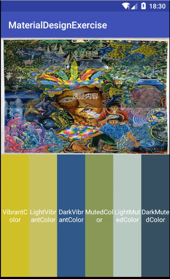 当第一次分析图片的时候,会获取到充满活力的样本,将其用HasMap保存起来,如果已经分析过就直接从Map中获取到,不需要再次分析,提高效率,其中setColor()方法是给状态栏、Toolbar、TabLayout等设置背景色: