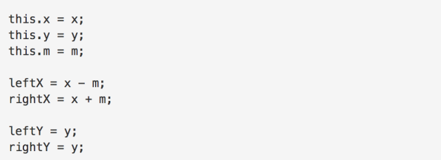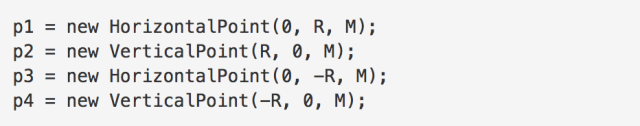这个构造函数的意思就是,通过设置端点的坐标(x,y),以及端点到控制点的距离(M),即可得到端点坐标和两个控制点的坐标。那么VerticalPoint类的构造函数的思路也就不用多说了。