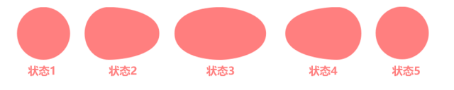 细心的我们可以发现这个球一共经历了5个状态,并且动画是通过形状的变化加上画布的位移而产生的
