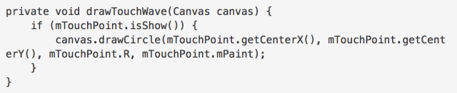 在onDraw方法画出点击的产生的圆