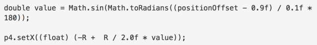 p2点在这个状态的中从(R,0)变成了(9/5 R,0),*positionOffset / 0.2f为这个区间(0,0.2]的变化率。
