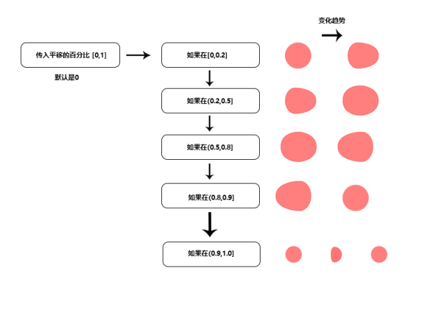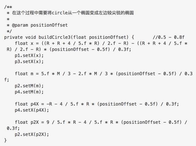下面我们来看一下BezierCircle下面这个核心的函数,思路就是通过滑动的百分比,来控制图形的形态。