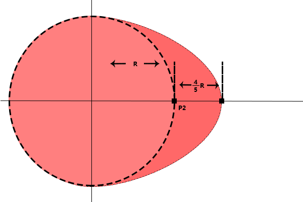 P1(0,R),P2(5/9R,0),P3(0,-R),P4(-R,0)