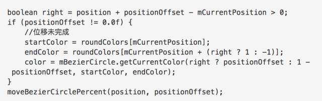 这里是颜色的相关计算,mCurrentPosition是当前页的位置。