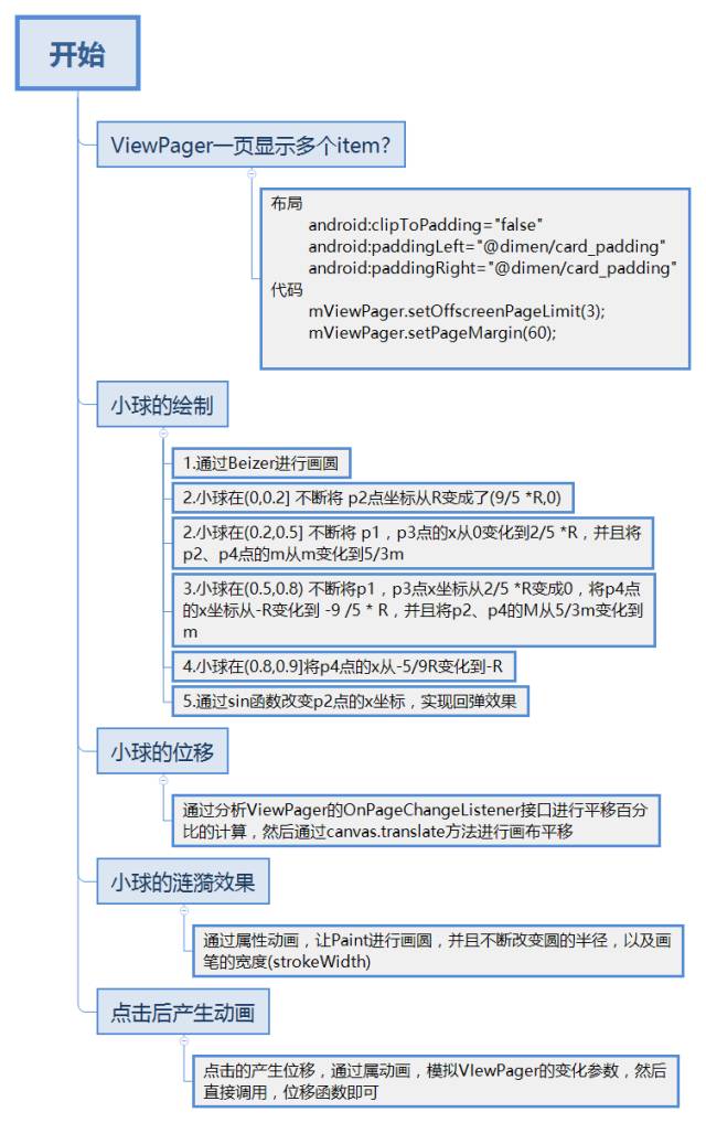 上面我们看到点击后通过属性动画完成涟漪效果的显示,同样我们可以利用属性动画,让其模拟viewPager的参数的变化过程,这样之前的ViewPager函数就可以进行调用就行了。