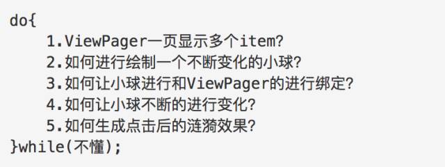 上面我们一步一步实现了ViewPager的效果,接下来的重头戏就是如何去实现小球?