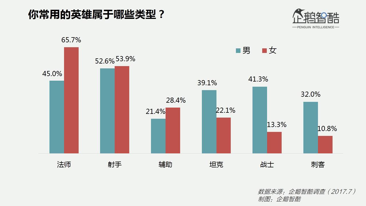 6.法师是女性玩家最常用的英雄类型,其次是射手