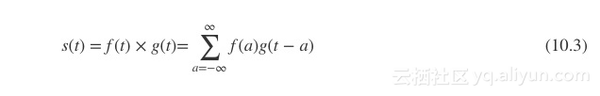 一般情况下,我们并不需要记录任意时刻的数据,而是以一定的时间间隔(也即频率)采样即可。这么说是有理论根据的,根据香农采样定理,当采样频率应不小于模拟信号频谱中最高频率的2倍时,可以不失真地恢复模拟信号。对于离散信号,卷积操作可用如公式(10.3)表示: