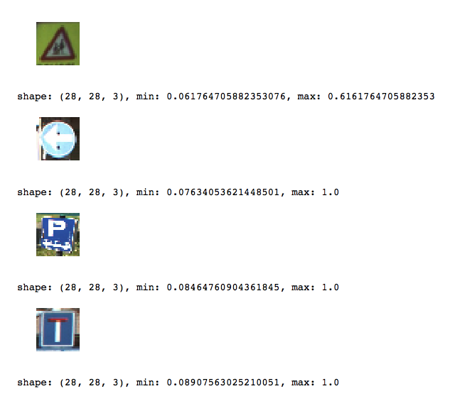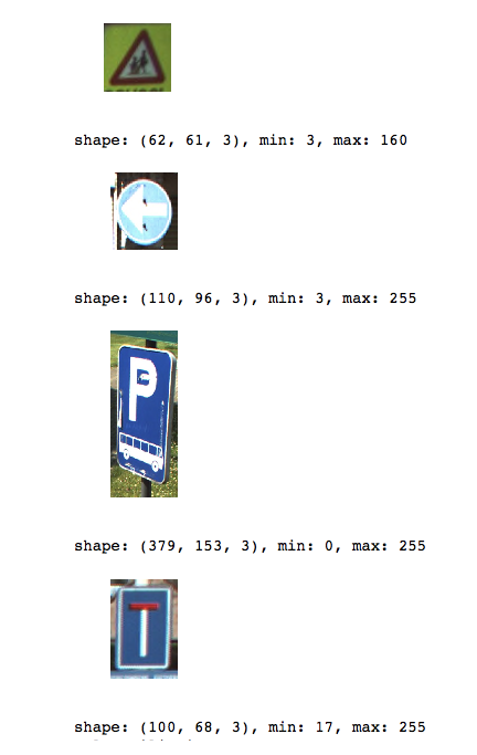 你首先可以显示输出它们,但为什么不使用 matplotlib 来得到交通标志本身的图表并进行视觉比较呢?
