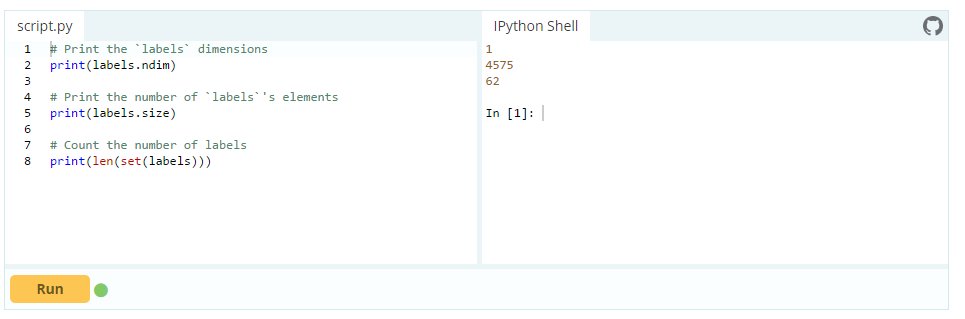 但是,如果你确实想看到这个结果,你就必须以一种交互式会话的方式运行这段代码。做到这一点的方式有好几个,下面展示了在 DataCamp Light 代码块中的情况: