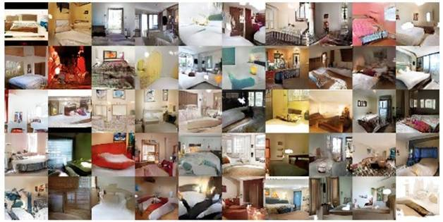 2016年初,在GAN的基础上,Indico Research和Facebook AI实验室将GAN用深度卷积神经网络进行实现(称作DCGAN,Deep Convolutional GAN),工作发表在国际表示学习重要会议ICLR 2016上,并在无监督深度学习模型中取得了当时最好的效果。图8展示了一些由DCGAN生成的卧室图像。
