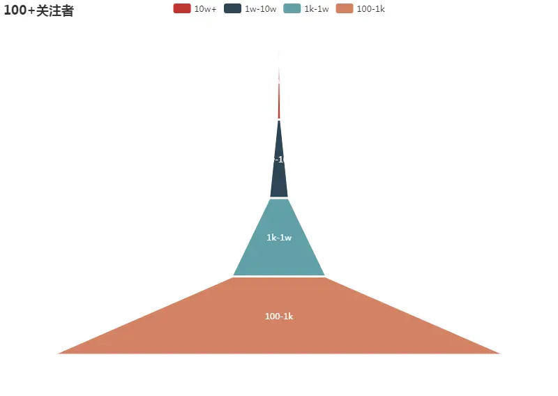 大V总是少数的,而小透明到底有多少、分布情况如何呢?将关注人数划分成不同区间,绘制成如下金字塔图: